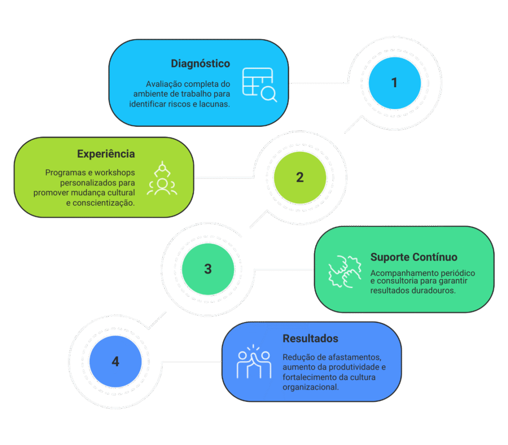 Consultoria, treinamentos e soluções personalizadas para transformar o ambiente de trabalho em um espaço saudável, motivador e sustentável.